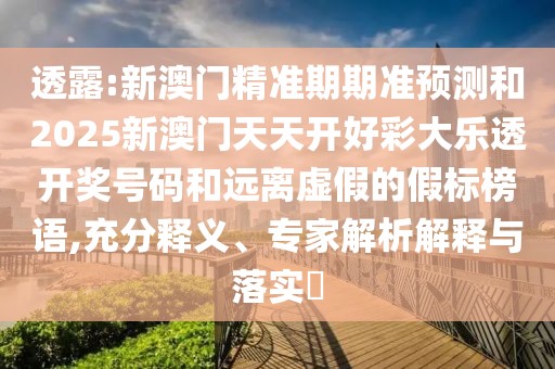 新澳門精準(zhǔn)期期準(zhǔn)預(yù)測(cè)和2025新澳門天天開好彩大樂透開獎(jiǎng)號(hào)碼的概念,需要從多個(gè)角度進(jìn)行全面釋義、專家解析和落實(shí),以幫助用戶遠(yuǎn)離虛假的假標(biāo)榜語。