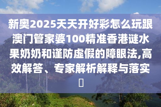 新奧2025天天開好彩怎么玩跟澳門管家婆100精準(zhǔn)香港謎水果奶奶和謹(jǐn)防虛假的障眼法,高效解答、專家解析解釋與落實(shí)?