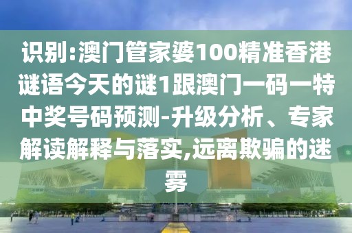 澳門管家婆100精準(zhǔn)香港謎語今天的謎1跟澳門一碼一特中獎(jiǎng)號(hào)碼預(yù)測:升級(jí)分析、專家解讀解釋與落實(shí)