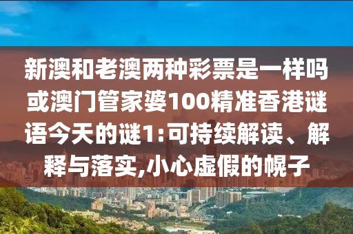 關(guān)于新澳和老澳兩種彩票是否一樣,以及澳門管家婆100精準香港謎語今天的謎1的概念,我們需要從多個角度進行解讀、解釋和落實,本文旨在幫助讀者全面理解這些概念,并警惕虛假的幌子。