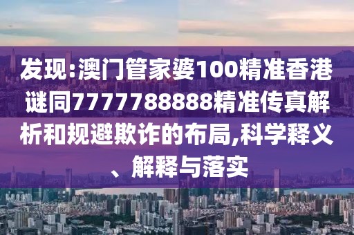 澳門(mén)管家婆100精準(zhǔn)香港謎同7777788888精準(zhǔn)傳真解析的科學(xué)釋義、解釋與落實(shí)