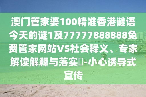 澳門管家婆100精準(zhǔn)香港謎語今天的謎1及77777888888免費(fèi)管家網(wǎng)站VS社會釋義、專家解讀解釋與落實(shí)?-小心誘導(dǎo)式宣傳