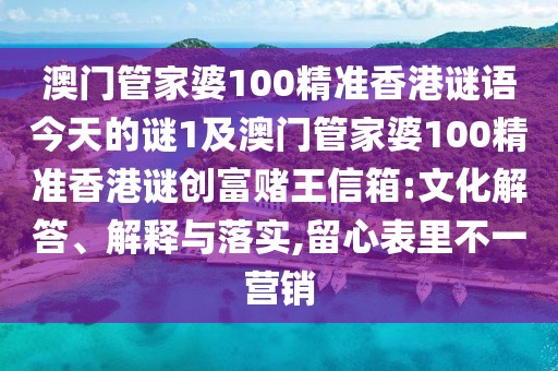 澳門管家婆100精準(zhǔn)香港謎語今天的謎1及澳門管家婆100精準(zhǔn)香港謎創(chuàng)富賭王信箱:文化解答、解釋與落實(shí)