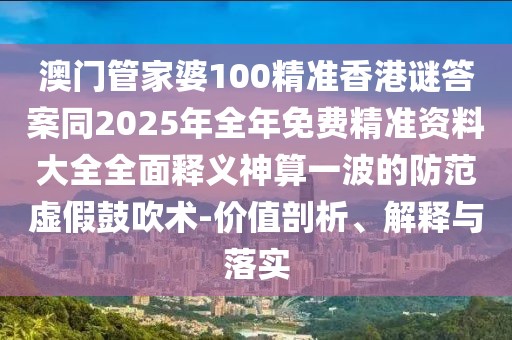 澳門管家婆100精準(zhǔn)香港謎答案同2025年全年免費(fèi)精準(zhǔn)資料大全全面釋義神算一波的價(jià)值剖析、解釋與落實(shí)