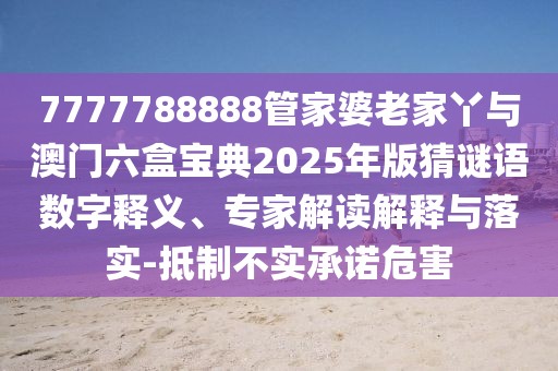 7777788888管家婆老家丫與澳門六盒寶典2025年版猜謎語:數(shù)字釋義、專家解讀解釋與落實(shí)