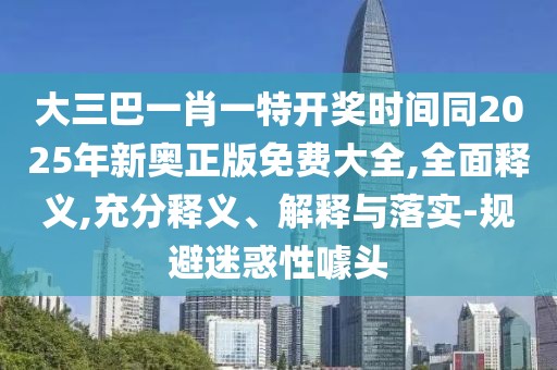 隨著網(wǎng)絡(luò)技術(shù)的發(fā)展,各種信息層出不窮,其中不乏一些具有迷惑性的內(nèi)容,關(guān)于“大三巴一肖一特開(kāi)獎(jiǎng)時(shí)間同2025年新奧正版免費(fèi)大全”的信息引起了廣泛關(guān)注,為了幫助大家充分理解這一概念,避免被迷惑性噱頭所誤導(dǎo),本文將從專家解讀的角度,全面釋義并落實(shí)相關(guān)概念。