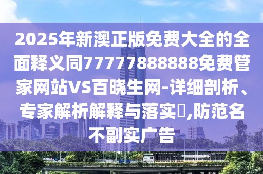 2025年新澳正版免費(fèi)大全”、“77777888888免費(fèi)管家網(wǎng)站”與“百曉生網(wǎng)”的全面釋義、專家解析解釋與落實(shí),以及防范名不副實(shí)廣告的提醒