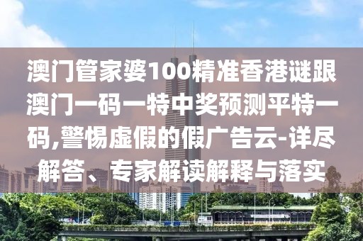 澳門管家婆100精準(zhǔn)香港謎跟澳門一碼一特中獎預(yù)測平特一碼:詳盡解答、專家解讀解釋與落實