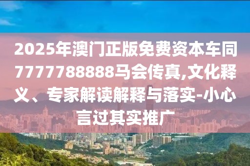 2025年澳門正版免費資本車同7777788888馬會傳真,文化釋義、專家解讀解釋與落實-小心言過其實推廣