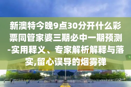 關(guān)于新澳特今晚9點30分開什么彩票同管家婆三期必中一期預測的概念,涉及到彩票預測、彩票開獎時間以及相關(guān)的術(shù)語和解讀,在探討這一主題時,我們需要從實用釋義、專家解析解釋與落實相關(guān)概念三個方面展開描述,同時提醒用戶注意避免受到誤導的煙霧彈的影響。
