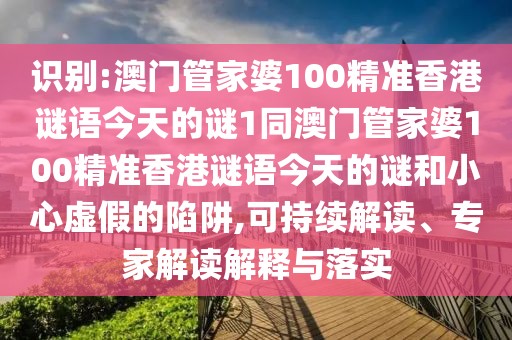 關(guān)于識別“澳門管家婆100精準香港謎語今天的謎1”與“澳門管家婆100精準香港謎語”的概念,需要從多個角度進行解讀,特別是要警惕其中可能存在的虛假陷阱,以下是對此進行的可持續(xù)解讀、專家解讀及如何落實相關(guān)概念的分析。