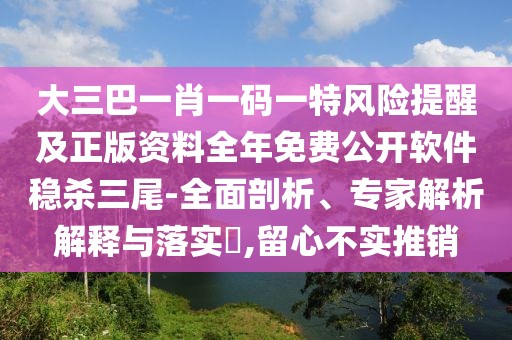 關(guān)于大三巴一肖一碼一特風(fēng)險(xiǎn)提醒及正版資料全年免費(fèi)公開軟件穩(wěn)殺三尾的概念,這是一個(gè)涉及多個(gè)領(lǐng)域和復(fù)雜概念的話題,需要我們從多個(gè)角度進(jìn)行解讀和剖析,以下是對(duì)該話題的全面剖析、專家解析以及落實(shí)相關(guān)概念的描述,并特別提醒用戶留心不實(shí)推銷。