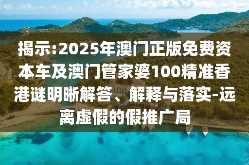揭示:2025年澳門正版免費(fèi)資本車及澳門管家婆100精準(zhǔn)香港謎明晰解答、解釋與落實(shí)-遠(yuǎn)離虛假的假推廣局