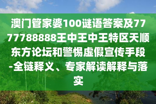 澳門管家婆100謎語(yǔ)答案及7777788888王中王中王特區(qū)天順東方論壇和警惕虛假宣傳手段-全鏈釋義、專家解讀解釋與落實(shí)