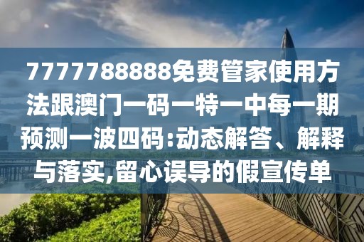 7777788888免費(fèi)管家使用方法”與“澳門一碼一特一中每一期預(yù)測一波四碼動(dòng)態(tài)解答”的解釋、落實(shí)及警惕虛假宣傳