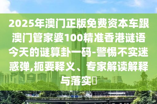 2025年澳門正版免費(fèi)資本車跟澳門管家婆100精準(zhǔn)香港謎語今天的謎算卦一碼-警惕不實(shí)迷惑彈,扼要釋義、專家解讀解釋與落實(shí)?