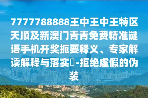 7777788888王中王中王特區(qū)天順及新澳門青青免費精準謎語手機開獎的扼要釋義、專家解讀解釋與落實?