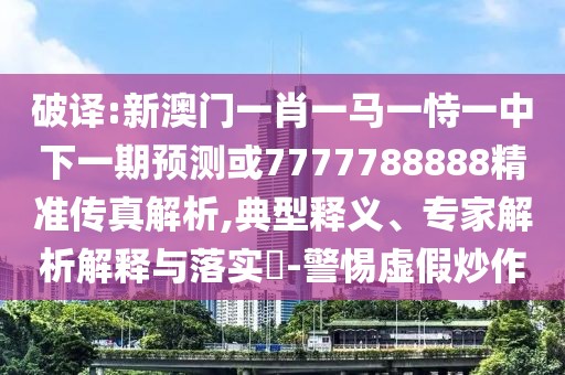 新澳門一肖一馬一恃一中下一期預測或7777788888精準傳真解析典型釋義、專家解析解釋與落實、警惕虛假炒作”的全面解析