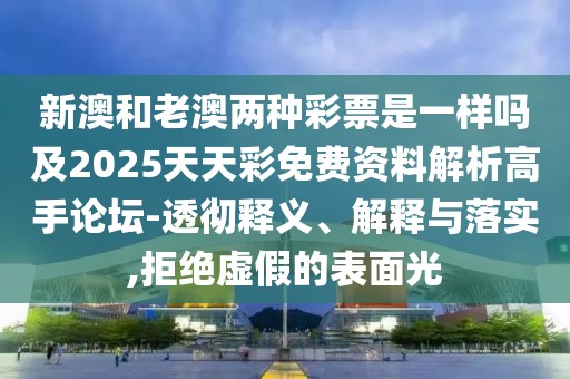 新澳和老澳兩種彩票是一樣嗎及2025天天彩免費資料解析高手論壇-透徹釋義、解釋與落實,拒絕虛假的表面光