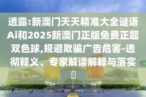 關(guān)于透露、新澳門(mén)天天精準(zhǔn)大全謎語(yǔ)Ai、2025新澳門(mén)正版免費(fèi)正題雙色球以及規(guī)避欺騙廣告危害的透徹釋義、專(zhuān)家解讀解釋與落實(shí)