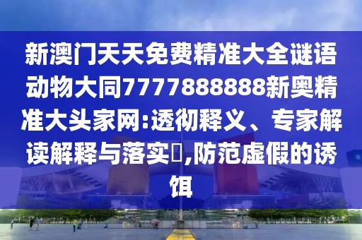 關(guān)于新澳門天天免費(fèi)精準(zhǔn)大全謎語(yǔ)動(dòng)物大同7777888888新奧精準(zhǔn)大頭家網(wǎng)的概念,需要從多個(gè)角度進(jìn)行透徹釋義、專家解讀與落實(shí),以幫助用戶了解和防范虛假的誘餌。