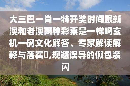 關(guān)于大三巴一肖一特開(kāi)獎(jiǎng)時(shí)間以及新澳和老澳彩票是否一致,玄機(jī)一碼的存在,以及規(guī)避誤導(dǎo)的假包裝等問(wèn)題,涉及到彩票文化、解讀與落實(shí)等方面,以下是對(duì)這些內(nèi)容的詳細(xì)解析。