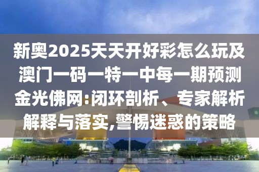 新奧2025天天開好彩怎么玩及澳門一碼一特一中每一期預(yù)測金光佛網(wǎng):閉環(huán)剖析、專家解析解釋與落實,警惕迷惑的策略