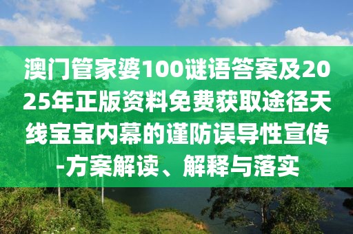澳門管家婆100謎語答案及2025年正版資料免費獲取途徑天線寶寶內(nèi)幕的謹防誤導(dǎo)性宣傳-方案解讀、解釋與落實