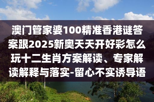 澳門管家婆100精準、香港謎答案及十二生肖方案解讀與落實——警惕虛假宣傳的誘惑