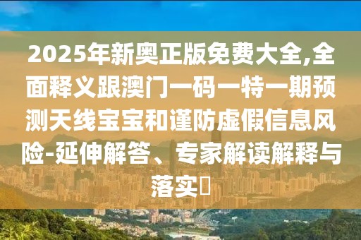 2025年新奧正版免費(fèi)大全”與“澳門一碼一特一期預(yù)測(cè)天線寶寶”的概念及相關(guān)解讀,我們需要從多個(gè)角度進(jìn)行描述和解讀,確保用戶能夠明確理解并防范虛假信息風(fēng)險(xiǎn)。