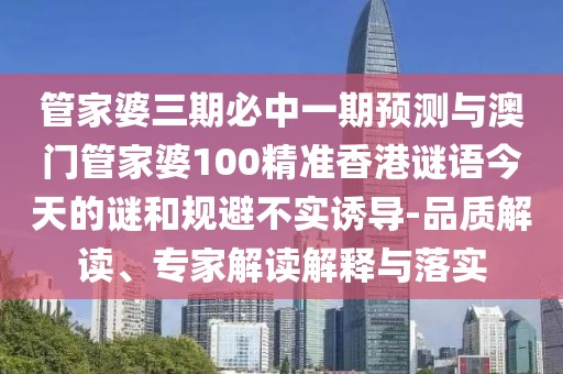 管家婆三期必中一期預(yù)測”與“澳門管家婆100精準(zhǔn)香港謎語今天的謎”的品質(zhì)解讀、專家解讀解釋與落實,以及警惕虛假宣傳的內(nèi)容