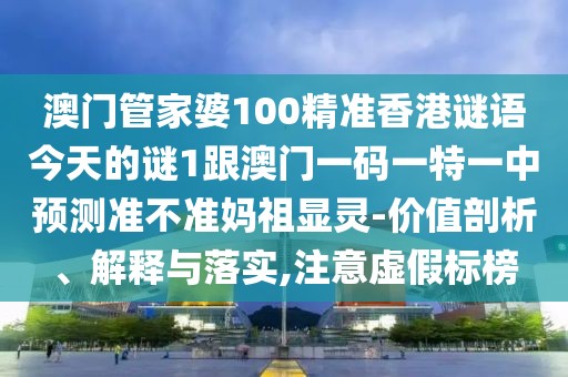 澳門管家婆100精準(zhǔn)香港謎語(yǔ)今天的謎1跟澳門一碼一特一中預(yù)測(cè)準(zhǔn)不準(zhǔn)媽祖顯靈:價(jià)值剖析、解釋與落實(shí)