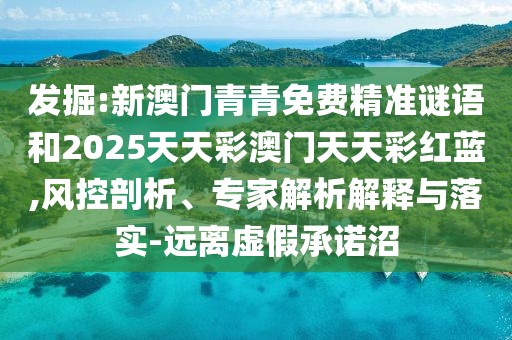 本文將圍繞關鍵詞“發(fā)掘:新澳門青青免費精準謎語”、“2025天天彩澳門天天彩紅藍”、“遠離虛假承諾”、“沼-風控剖析”、“專家解析解釋與落實”進行全面釋義、解釋與落實,并特別提醒公眾警惕虛假宣傳,希望通過本文,幫助公眾認清相關概念,避免受到虛假宣傳的欺騙。