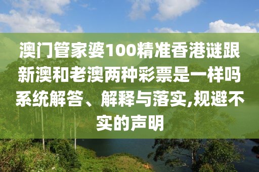 關(guān)于關(guān)鍵詞“澳門管家婆100精準香港謎”、“跟新澳和老澳兩種彩票是否一樣”以及“規(guī)避不實的聲明”的解釋與落實,涉及到彩票行業(yè)中的多個方面,包括彩票類型、運營方式、真實性聲明等,下面將逐一進行解答和解釋,并探討如何在實際操作中落實這些概念。