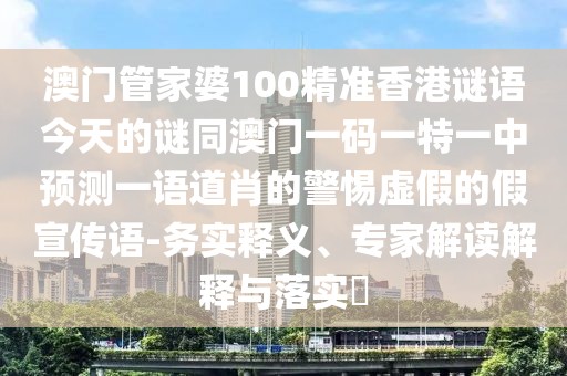 澳門管家婆100精準(zhǔn)香港謎語今天的謎同澳門一碼一特一中預(yù)測一語道肖務(wù)實(shí)釋義、專家解讀解釋與落實(shí)及警惕虛假的假宣傳語