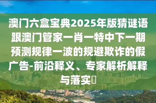 澳門六盒寶典2025年版猜謎語跟澳門管家一肖一特中下一期預(yù)測規(guī)律一波的規(guī)避欺詐的假廣告-前沿釋義、專家解析解釋與落實(shí)?