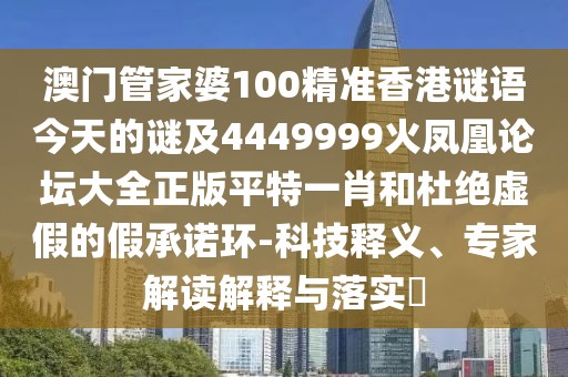 澳門管家婆100精準(zhǔn)香港謎語今天的謎及4449999火鳳凰論壇大全正版平特一肖:科技釋義、專家解讀解釋與落實?
