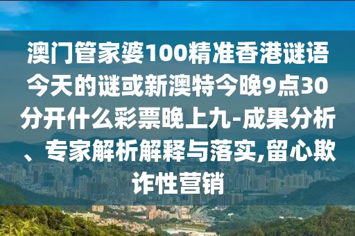 澳門(mén)管家婆100精準(zhǔn)香港謎語(yǔ)今天的謎或新澳特今晚9點(diǎn)30分開(kāi)什么彩票晚上九的成果分析、專(zhuān)家解析解釋與落實(shí)