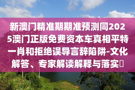 新澳門精準期期準預測同2025澳門正版免費資本車真相平特一肖的文化解答、專家解讀解釋與落實?