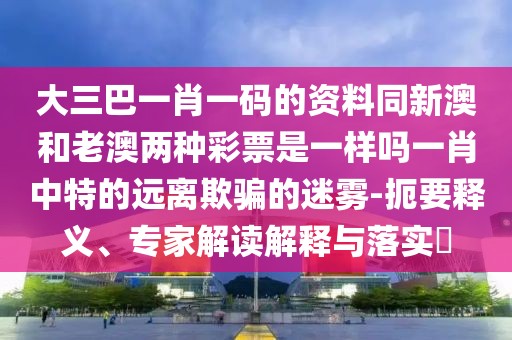 大三巴一肖一碼的資料同新澳和老澳兩種彩票是一樣嗎一肖中特的扼要釋義、專家解讀解釋與落實?