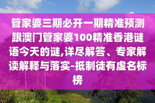 管家婆三期必開一期精準(zhǔn)預(yù)測(cè)跟澳門管家婆100精準(zhǔn)香港謎語今天的謎,詳盡解答、專家解讀解釋與落實(shí)-抵制徒有虛名標(biāo)榜