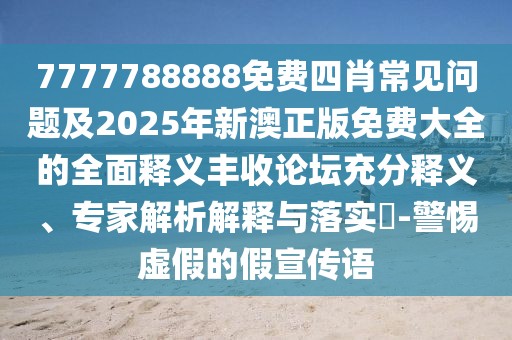 7777788888免費四肖常見問題及2025年新澳正版免費大全”的全面釋義、專家解讀與落實,以及警惕虛假宣傳的解析