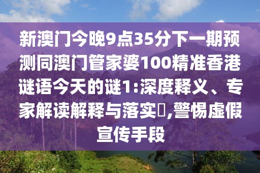 新澳門(mén)今晚9點(diǎn)35分下一期預(yù)測(cè)同澳門(mén)管家婆100精準(zhǔn)香港謎語(yǔ)今天的謎1:深度釋義、專家解讀解釋與落實(shí)?,警惕虛假宣傳手段