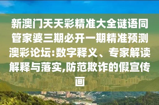 關(guān)于新澳門天天彩精準大全謎語同管家婆三期必開一期精準預(yù)測澳彩論壇數(shù)字釋義、專家解讀解釋與落實和防范欺詐的假宣傳畫
