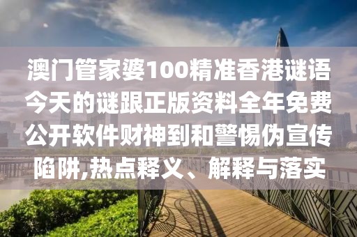 澳門管家婆100精準香港謎語今天的謎跟正版資料全年免費公開軟件財神到和警惕偽宣傳陷阱,熱點釋義、解釋與落實