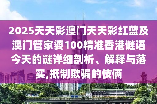 2025天天彩澳門天天彩紅藍(lán)及澳門管家婆100精準(zhǔn)香港謎語(yǔ)今天的謎詳細(xì)剖析、解釋與落實(shí),抵制欺騙的伎倆