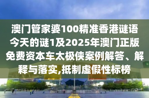 澳門管家婆100精準(zhǔn)香港謎語今天的謎1及2025年澳門正版免費資本車太極俠案例解答、解釋與落實,抵制虛假性標(biāo)榜