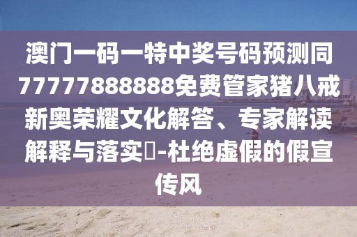 澳門一碼一特中獎號碼預測同77777888888免費管家豬八戒新奧榮耀文化解答、專家解讀解釋與落實?-杜絕虛假的假宣傳風