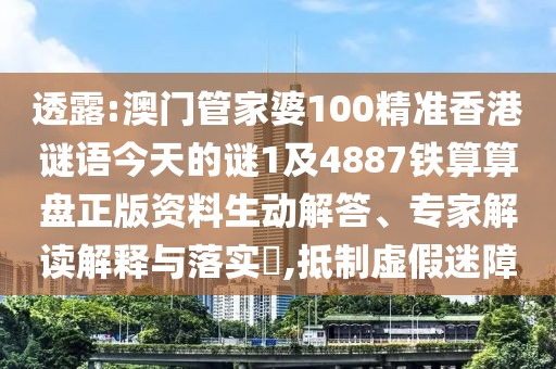 透露:澳門管家婆100精準(zhǔn)香港謎語今天的謎1及4887鐵算算盤正版資料生動解答、專家解讀解釋與落實?,抵制虛假迷障