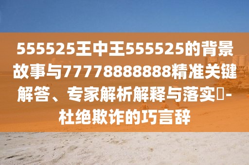 關(guān)于關(guān)鍵詞“555525王中王555525的背景故事與77778888888精準(zhǔn)-杜絕欺詐的巧言辭”,我們可以從全面釋義、專家解讀與落實(shí)、警惕虛假宣傳等方面進(jìn)行深入解析。